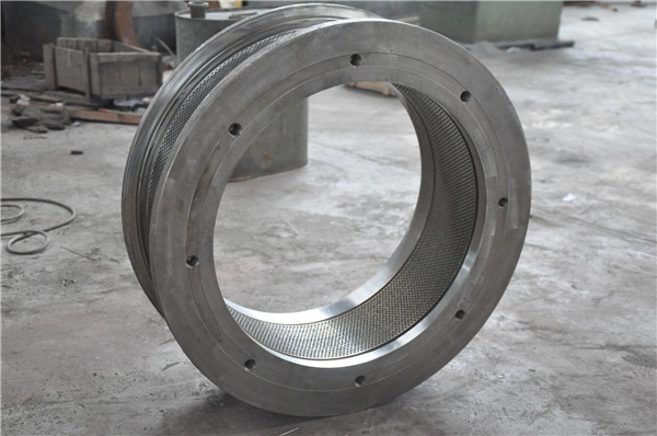 環(huán)模分別采用合金鋼和高鉻不銹鋼材料制作,經(jīng)專(zhuān)用機床鉆孔,工業(yè)計算機可控碳氮共滲熱處理后,具備安裝精度和表面硬度值高、具耐磨等特點(diǎn),出料孔硬度HRC55-60,??妆砻娲植诙萊a值0.8以上;環(huán)模出料流暢、時(shí)產(chǎn)高、飼料品質(zhì)好;適用于國內外個(gè)型機組。